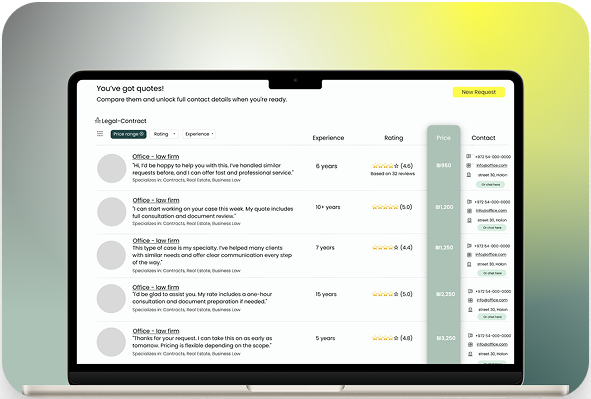 שלחו את בקשתכם תוך דקות והתחילו לקבל הצעות.
